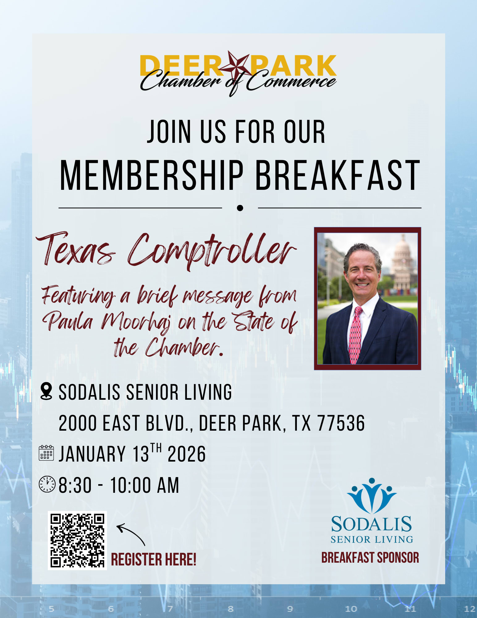 Join us for our Membership Breakfast and start your morning with great food, great company, and great connections! Come enjoy a warm, welcoming atmosphere as we share updates, network with fellow members, and kick off the New Year together!