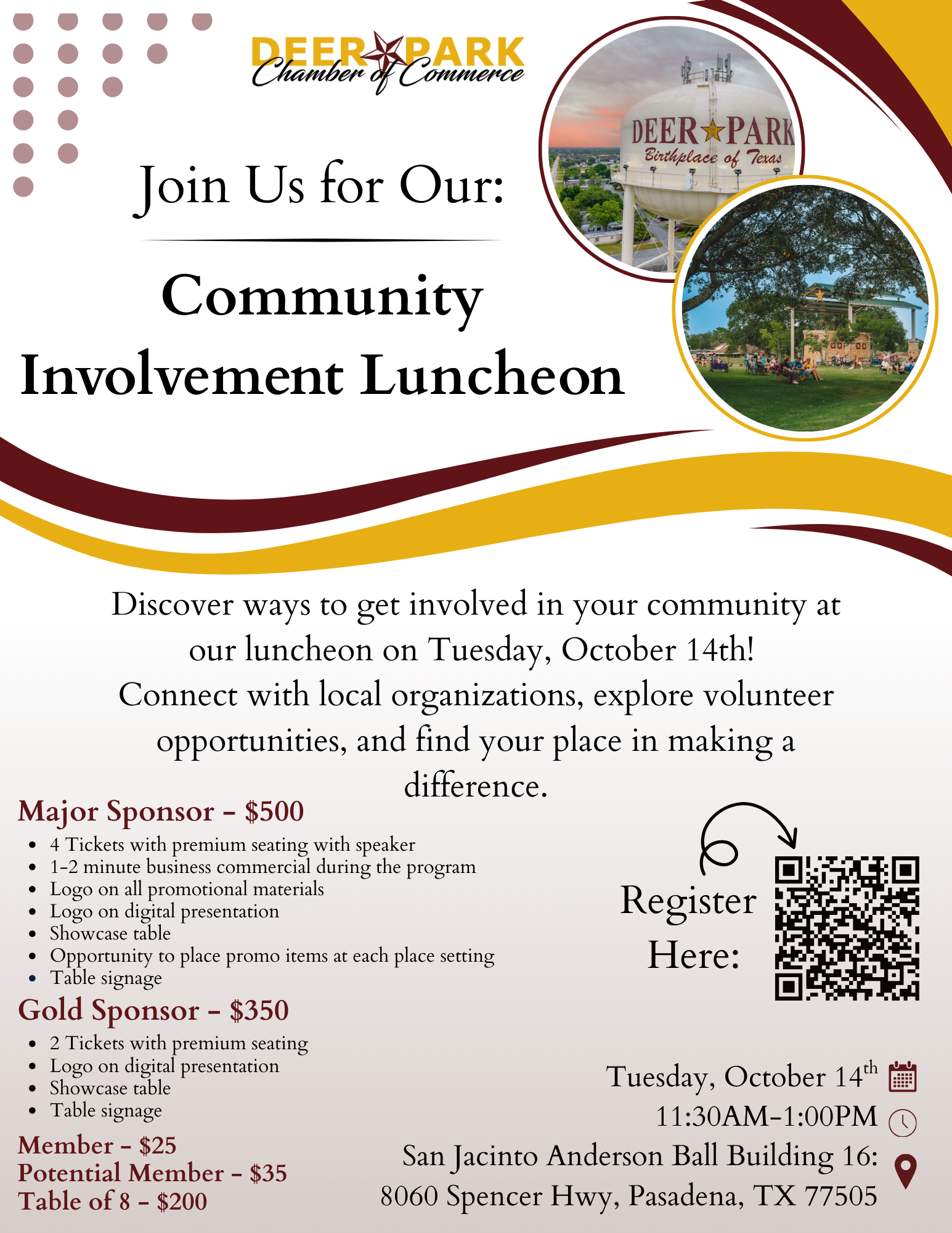Discover ways to get involved in your community at our membership luncheon on Tuesday, October 14th. Connect with local organizations, explore volunteer opportunities and find your place in making a difference.